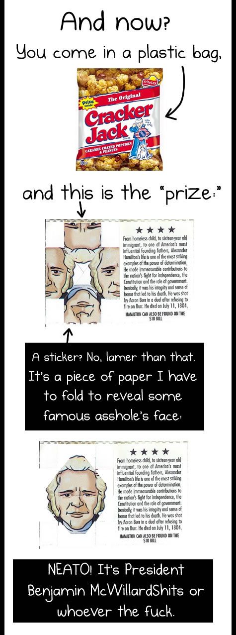 Also, A big thanks to Sabriya Stukes for suggesting I do a comic about the shit-tastic quality of current Cracker Jack toys.